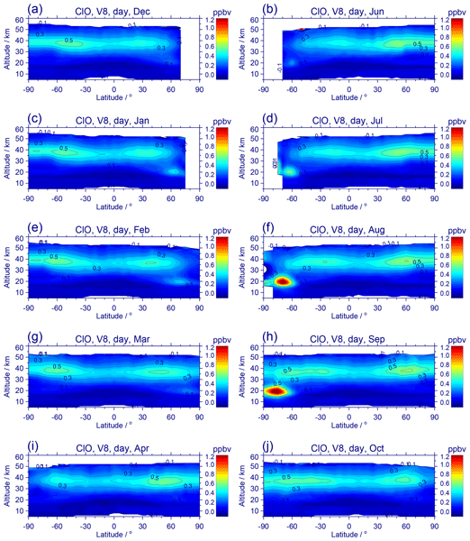 Santee, M. L., MacKenzie, I. A., Manney, G. L., Chipperfield, M. P., Bernath, P. F., Walker, K. A., Boone, C. D., Froidevaux, L., Livesey, N. J., and Waters, J. W.: A study of stratospheric chlorine partitioning based on new satellite measurements and modeling, J. Geophys. Res.-Atmos., 113, D12307, https://doi.org/10.1029/2007JD009057, 2008.