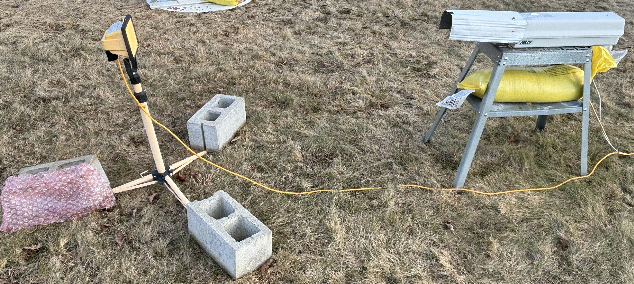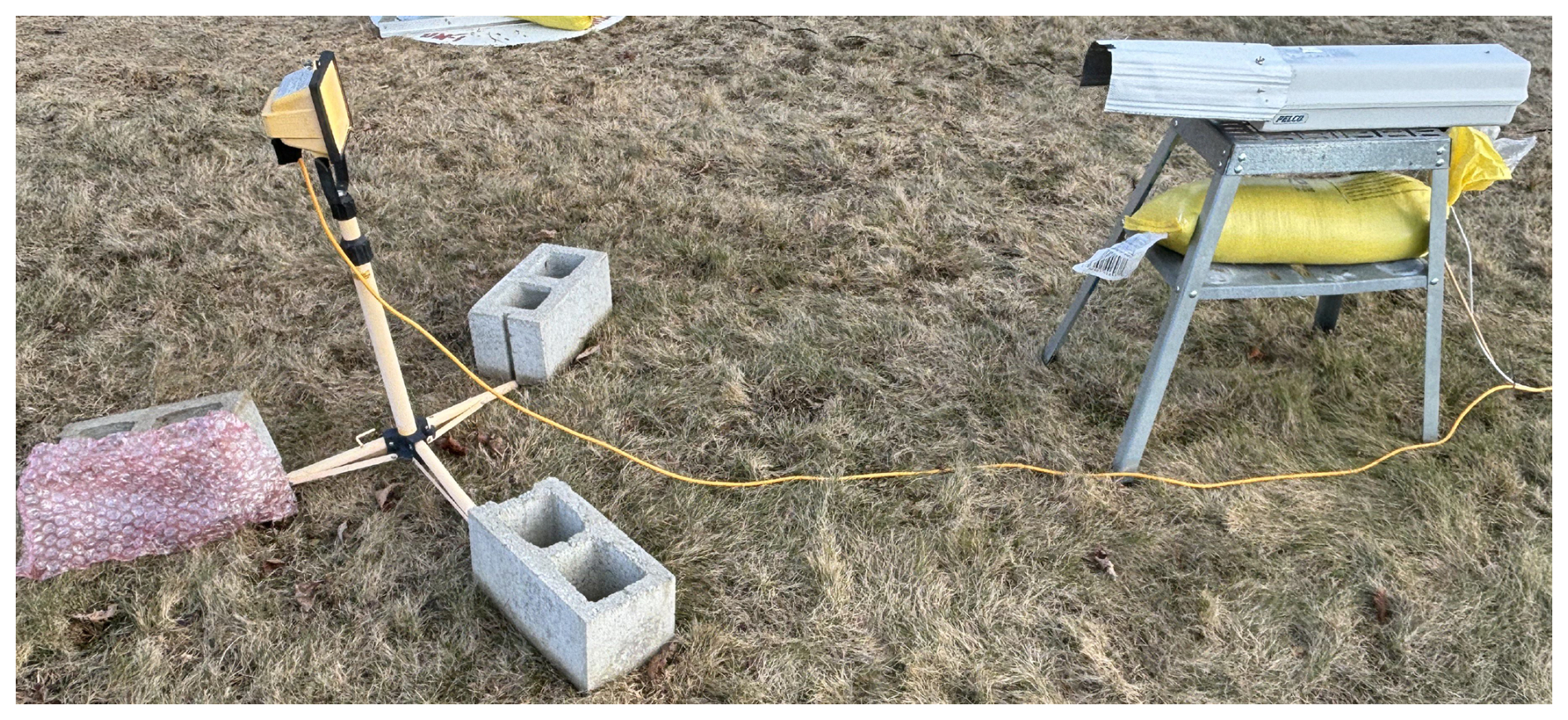 The Precipitation Imaging Package (PIP, Fig. 6, Pettersen et al., 2020, 2021; Helms et al., 2022; Tokay et al., 2023; King et al., 2024) is a NASA-developed video disdrometer consisting of a high-speed camera pointed at a halogen light source. The light source, located 2 m away from the camera lens, acts to backlight the precipitation particles that fall through the sampling volume, which is located 1.33 m from the lens. Critically, PIP uses an open sampling volume that is sufficiently far from the instrument components to prevent contamination of the measurements by particle shattering and other effects of the flow around the instrument under typical wind conditions (Newman et al., 2009). The PIP images are 640 by 480 pixels with a calibrated pixel size of 0.1 mm by 0.1 mm and are continuously collected at a rate of 380 frames per second. Due to bandwidth limitations, the images are compressed in the vertical by averaging adjacent pixels resulting in an effective pixel size of 0.1 mm by 0.2 mm. Although the actual sampling volume dimensions are a function of particle size (Newman et al., 2009), the sampling volume is no greater than 64 mm by 48 mm in the viewing plane of the camera and has a depth of field of approximately 117 times the maximum particle dimension (0.23 m for a 2 mm). The PIP analysis software generates a wide variety of direct particle measurements, although the two key measurements are the equivalent diameter and vertical motion as these are used to produce the PSD and the particle density estimates. PIP produces multiple levels of data output, as described in King and Coauthors 2024, and its highest order processed observations include particle count, rain and non-rain rate, particle density, and particle fall speed.