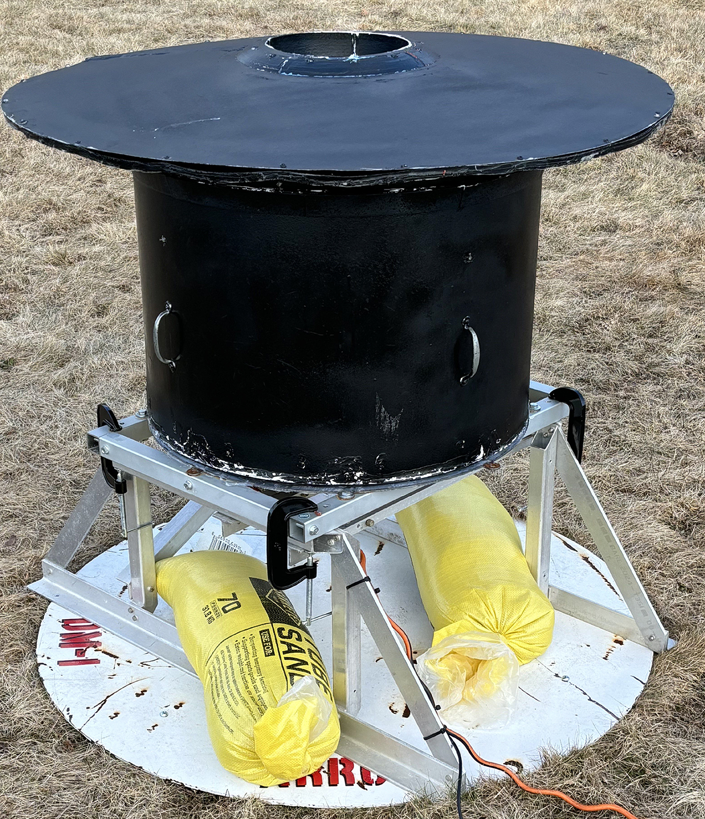 Temperature, relative humidity measurements and particle counts are produced in an actively aspirated sensor shield at 1 Hz. Due to its shape, this shield design can leverage gravity to mechanically separate large precipitation drops from the air. This separation occurs because larger droplets are dominated by their inertia while small droplets will follow the streamlines on the intake system according to Stokes flow (Britto Hupsel de Azevedo, 2024; Azevedo et al., 2024, 2025). This flow characteristic allows the system to sample the atmospheric conditions without exposure to harmful freezing precipitation. The 74 GHz, vertically pointing, phased array radar can use beam forming techniques to compensate aircraft motion, making Doppler velocity an approximation of hydrometeor fall velocity. WxUAS provides a unique perspective that connects the ground instrumentation with remote sensing instruments collecting observations above ground level. Its utility in capturing thermodynamic changes in the lowest levels of the atmosphere is essential for understanding precipitation events in near freezing conditions.