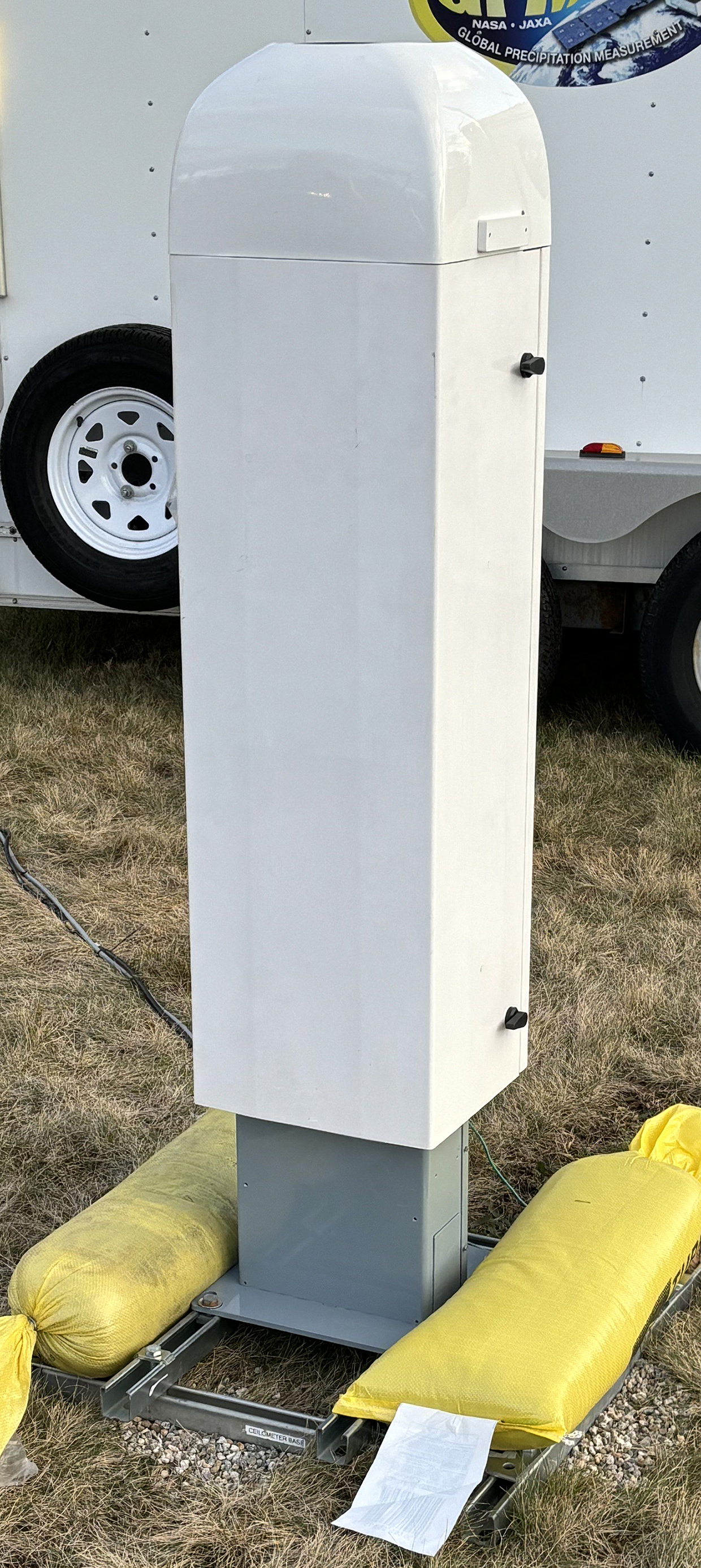 The All-in-One 2 (AIO, Fig. 2) is a sonic weather sensor, produced by Met One, that measures wind speed and direction, ambient air temperature, relative humidity, and barometric pressure, thereby providing the necessary background context for precipitation observations. The temperature and relative humidity sensors are unaspirated and filtered. AIO collects high resolution data at 1 Hz; it has an accuracy of ±0.2 °C for ambient air temperature and of ±3 % for relative humidity, which is essential for understanding precipitation phase. Observations from the AIO are recorded as 1 min averages. The observations from the AIO can enhance the interpretations and limitations of precipitation observations, such as snow microphysics (King et al., 2024). The GPM goal is to observe global precipitation; thus, the ability to constrain the observed meteorological conditions can enhance and validate the end outcome (how much of each precipitation phase fell) and the important quantities remotely sensed by the satellite (reflectivity, precipitation rate, particle size, etc.).