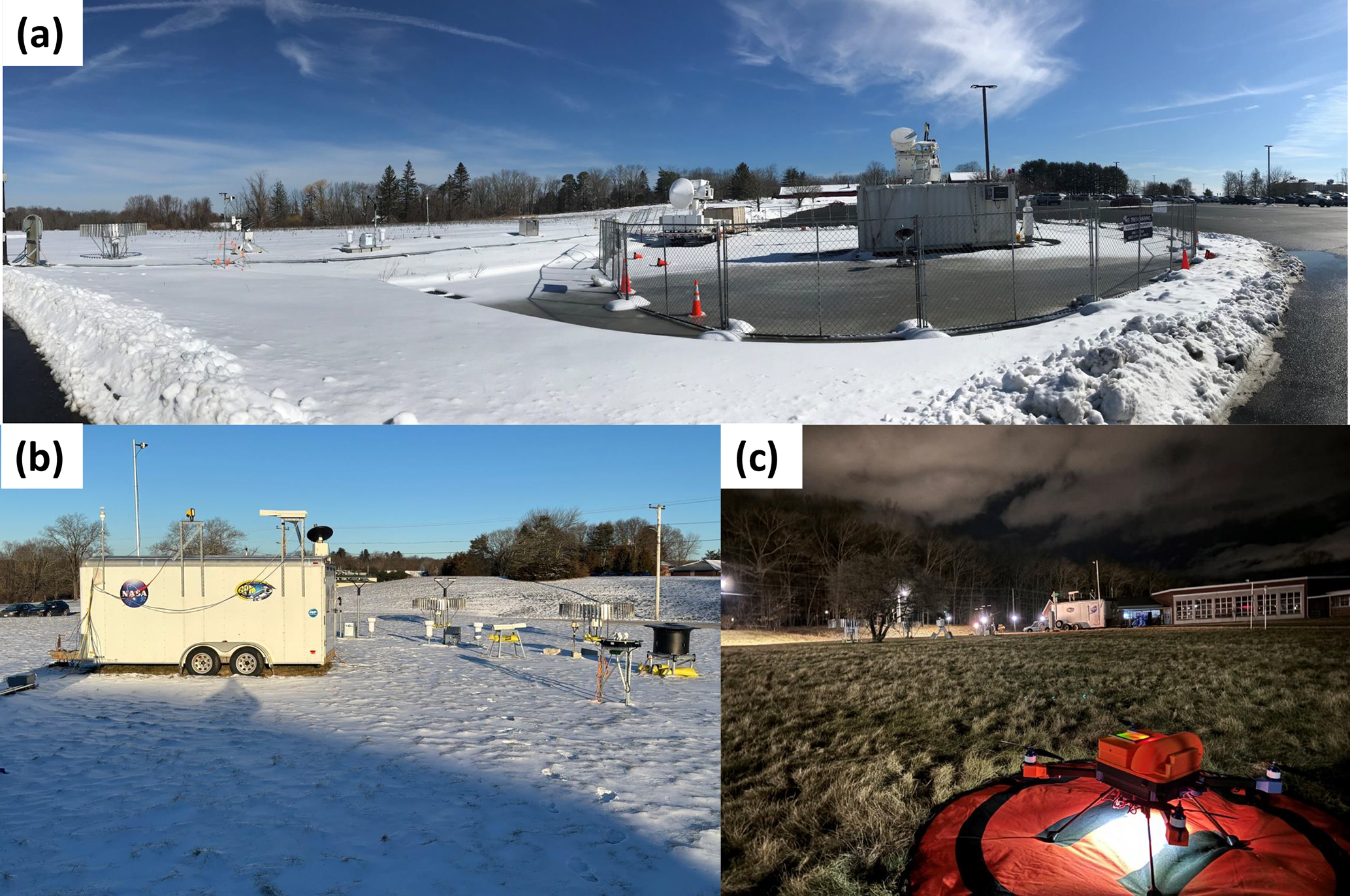 A combination of three observational platforms is ideal to have a robust estimate of precipitation phase and amount with the given uncertainty of each platform. This is feasible with targeted field campaigns, which have contributed to improving forecasters' understanding of thermodynamics and microphysical processes (Novak et al., 2023). To this point, a suite of in situ and remote sensing instruments were deployed at the University of Connecticut (UConn) in Northeast United States as a part of a NASA Global Precipitation Measurement (GPM) Ground Validation (GV) field campaign. The timing of this GPM GV campaign allowed for synergistic overlap with the Investigation of Microphysics and Precipitation of Atlantic Coast-Threatening Snowstorms field campaign (IMPACTS, McMurdie et al., 2022) in the winters of 2021–2022 and 2022–2023. During the overlapping field deployment seasons, three snowfall events were sampled by instruments from both campaigns by having airborne observations of flight legs over or near the UConn site to be combined with remote sensing and ground-based observations at or around UConn. The length of the field campaign, over four months, allowed for the collection of a rich data set from numerous rain, snow, and mixed phase transition events.