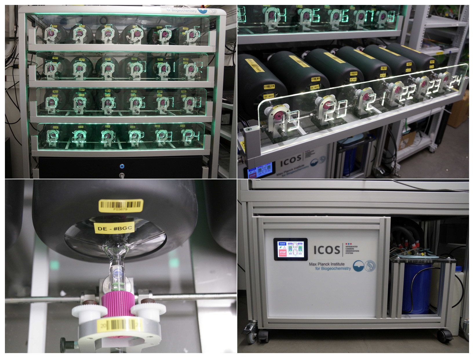 High-precision analysis of a comprehensive range of gas species and their isotopic signatures within the same sample, including radiocarbon, requires the collection of relatively large air volumes, with a minimum of 2 L for natural atmospheric concentrations. Sampling at regular frequencies is now facilitated by new instrumentation that allows one to automatically program sampling events for the collection of air samples in glass flasks following standardized protocols for the timing of sampling, the flow rate of air for sample collection, the drying of air before storage in flasks, and the pressure at which the air is stored (Levin et al., 2020). The Integrated Carbon Observation System (ICOS), an European research infrastructure for monitoring greenhouse gases (GHGs), has developed an automated sampling system that can be deployed to remote sites that have at least access to electrical power and internet. Infrastructure with these characteristics is available within the Amazon basin at the Amazon Tall Tower Observatory (ATTO) (Andreae et al., 2015), a research site situated in the central Amazon region that features a tall tower with a height of 325 This unique infrastructure provides a remarkable opportunity to collect gas samples at unprecedented heights for the region. In this article, we report on the initiation of a continuous monitoring program for gas sampling at the tall tower at the ATTO site for the continuous high-precision measurements of a set of GHGs and isotopes.