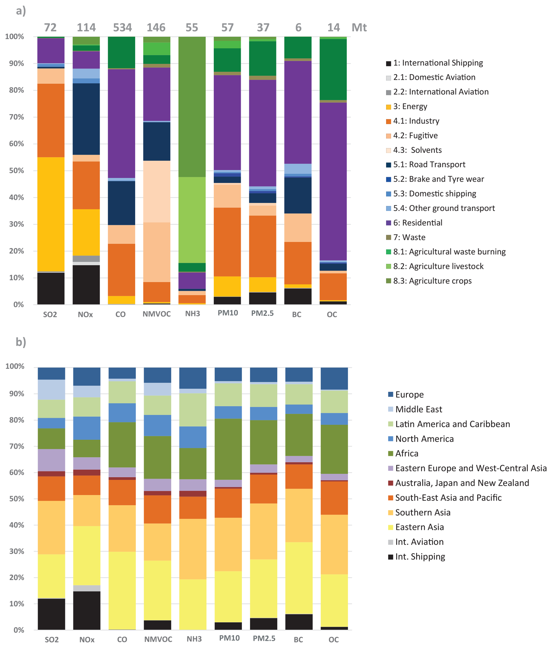 The HTAP_v3.2 emission mosaic helps to address the transboundary role of air pollutants by providing a key input for atmospheric modellers and supporting the evaluation of environmental impact analyses for poor air quality. For this reason, HTAP_v3.2 provides global 0.1 × 0.1° emission gridmaps for all air pollutants and specifically for acidifying and eutrophying gases (such as SO2, NH3, NOx), ozone precursors (NMVOC, CO, NOx), and primary particulate matter (PM10, PM2.5, BC, OC).