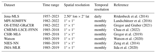 Table 2References for global spCO2 products used for comparison.