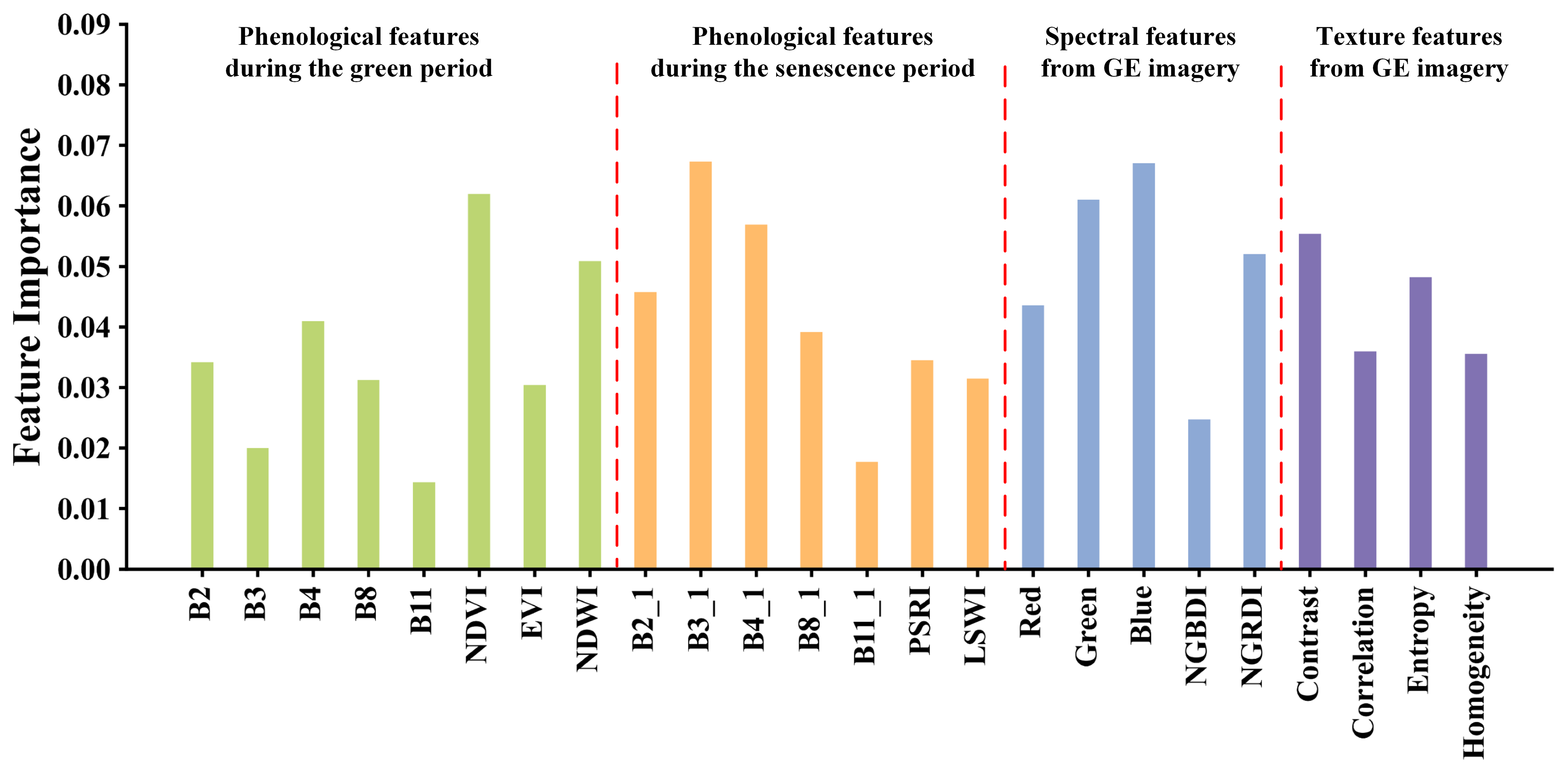 Figure 5The importance of multi-sourced features derived from the RF classifier.