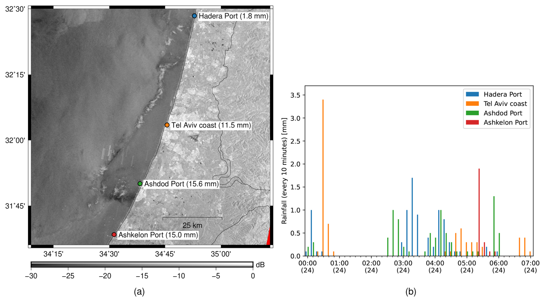 Another Copernicus service, the Climate Data Store (CDS), provides climate data such as global precipitation data; this service is implemented by the European Centre for Medium-Range Weather Forecasts (ECMWF). However, the rainfall data used in this article were obtained from the coastal weather stations obtained from the Israel Meteorological Service, provided by the Ministry of Transport and Road Safety, Israel. The service provides daily rainfall and rainfall automated recorded every 10 min. Note that these systems tend to underestimate the rainfall in major events according to the information provided by the service.