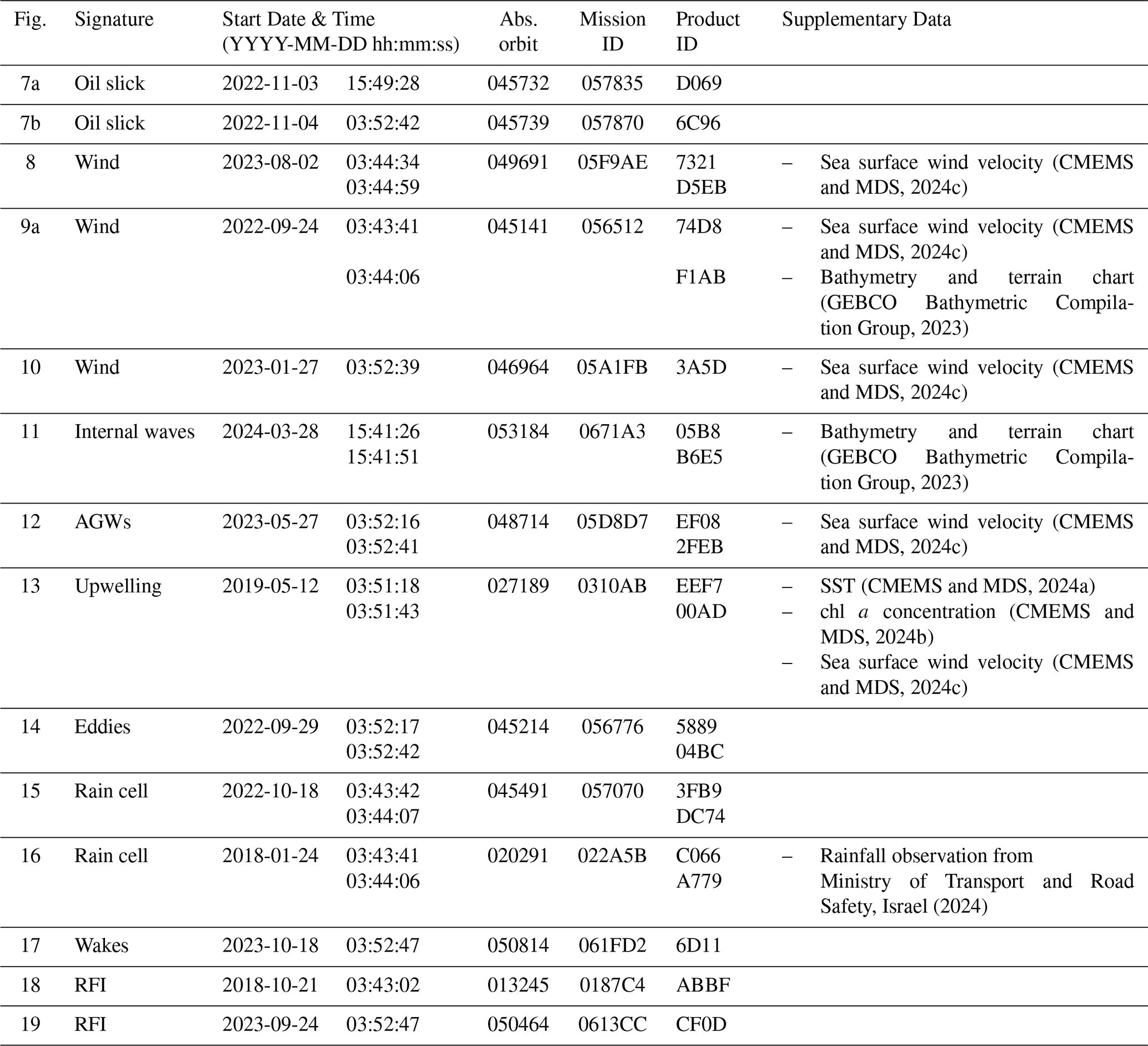 Yang, Y.-J. and Singha, S.: Oil Slicks, Look-Alikes and Other Remarkable SAR Signatures in Sentinel-1 Imagery in the Eastern Mediterranean Sea in 2019, PANGAEA [data set], https://doi.org/10.1594/PANGAEA.980773, 2025. a, b