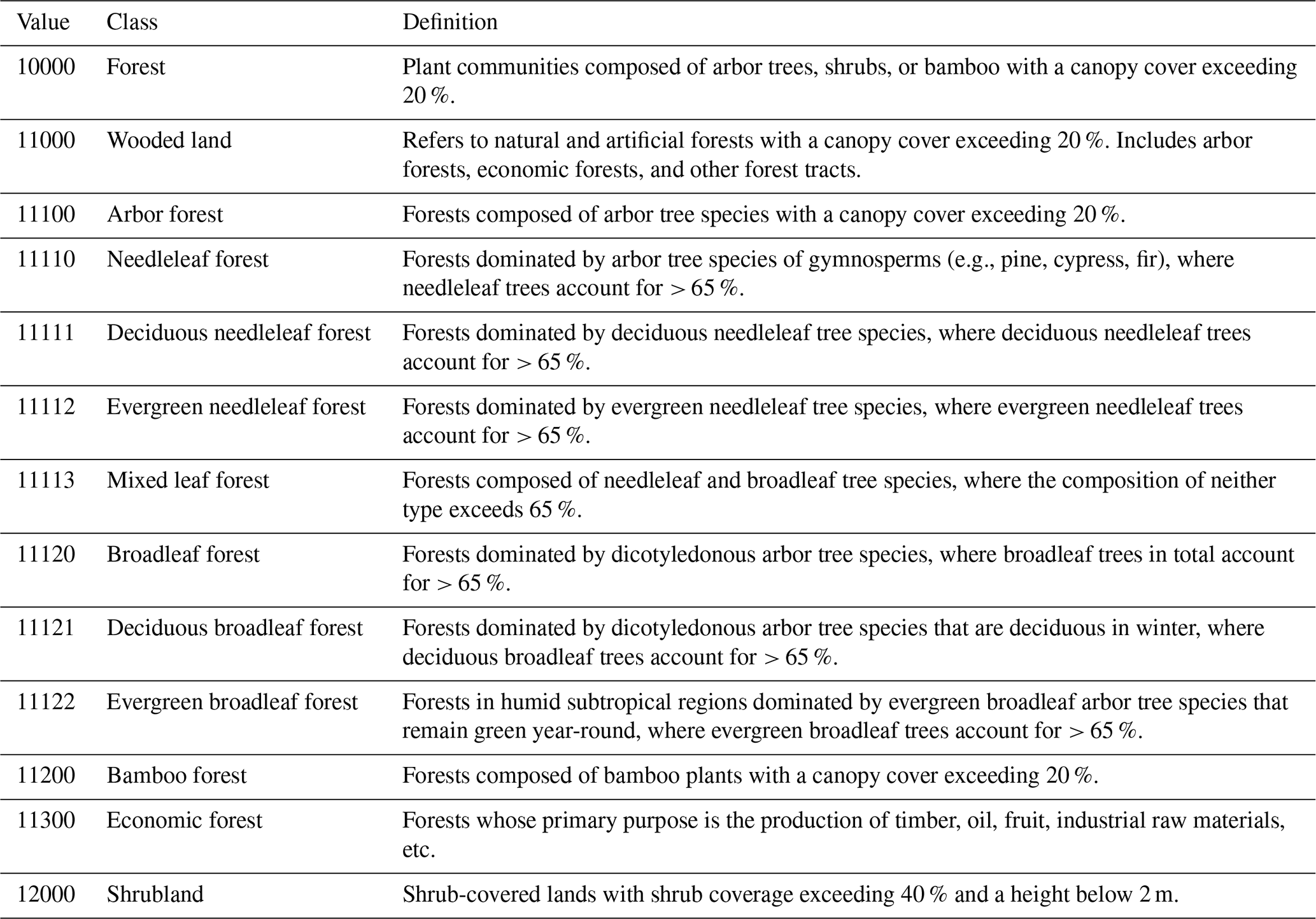Table 2Classification and definitions of forest components.
