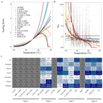 Across all model types, a consistent feature is the prediction of lower SOC mineralization rates at lower temperatures (Fig. 3A). This conforms with known biological constraints – low temperatures suppress microbial activity and freeze liquid water, thereby restricting substrate diffusion and microbial access. However, substantial uncertainty persists regarding mineralization responses at elevated temperatures. Specifically, the temperature response functions yield three distinct response patterns: