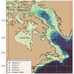 The western NW Atlantic (the Canadian Atlantic Shelf) includes, from north to south, its arctic gateways (Baffin Bay, Hudson Strait, and Hudson Bay), the Newfoundland and Labrador (NL) Shelf (including the Grand Banks of Newfoundland and the Flemish Cap), the Gulf of St. Lawrence, the Scotian Shelf, and part of the Gulf of Maine (Fig. 1). These regions are under the influence of the subarctic Labrador Current system and the subtropical Gulf Stream (and its offshore extension, the North Atlantic Current), two of the most important ocean currents in the North Atlantic. Along the Labrador coast, the Labrador Coastal Current (Smith et al., 1937; Florindo-López et al., 2020), fills the NL Shelf with frigid Arctic-origin waters that spread all the way to southern Newfoundland and into the Gulf of St. Lawrence through the Strait of Belle-Isle (Petrie and Anderson, 1983; Loder, 1991; Chen et al., 2022). Further south, along the Scotian Shelf, the Gulf Stream and the North Atlantic Current, bring warm and salty water northwards along the tail of the Grand Banks before being diverted east (Loder et al., 1998). Due to this balance between waters of different origins, the NL Shelf is not only located at a crossroad of global ocean circulation, but is also subject to large natural decadal variability in its ocean climate (Loder and Wang, 2015; Cyr and Galbraith, 2021). Areas of the domain close to shore are also being increasingly influenced by continental forcings such as river runoff (Haine et al., 2015).