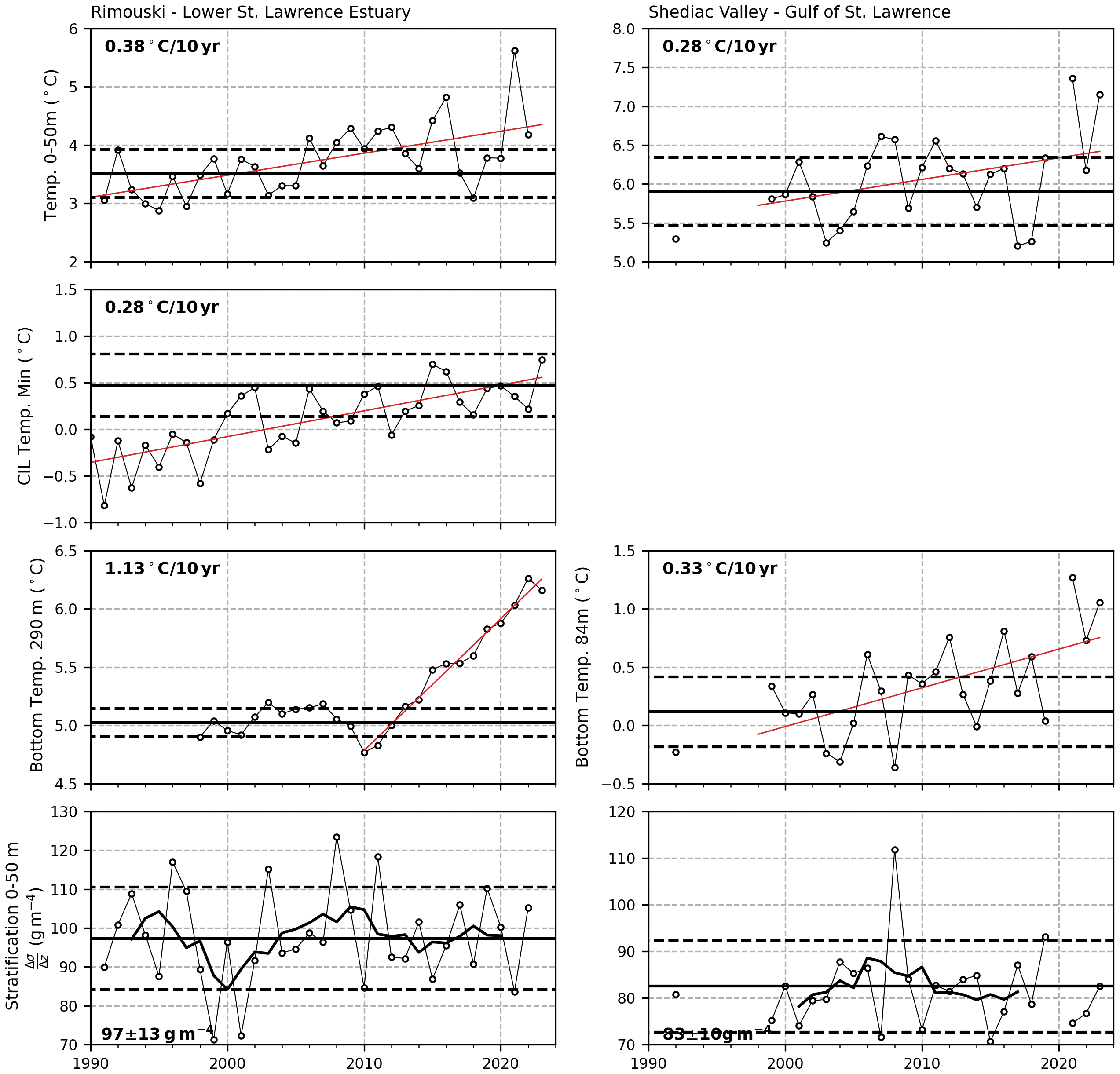 This work is a contribution to the Atlantic Zone Monitoring Program of Fisheries and Oceans Canada. The authors thank the numerous scientists, technicians, captains and crew members who have participated in the sampling and analysis effort since 1873. The authors also thank Trajce Alcinov, Heather Andres, Eugene Colbourne, Pascal Guillot, Roger Petitpas, Brian Petrie, Tahiana Ratsimbazafy, and Dave Senciall for their help with the preparation of this work.
