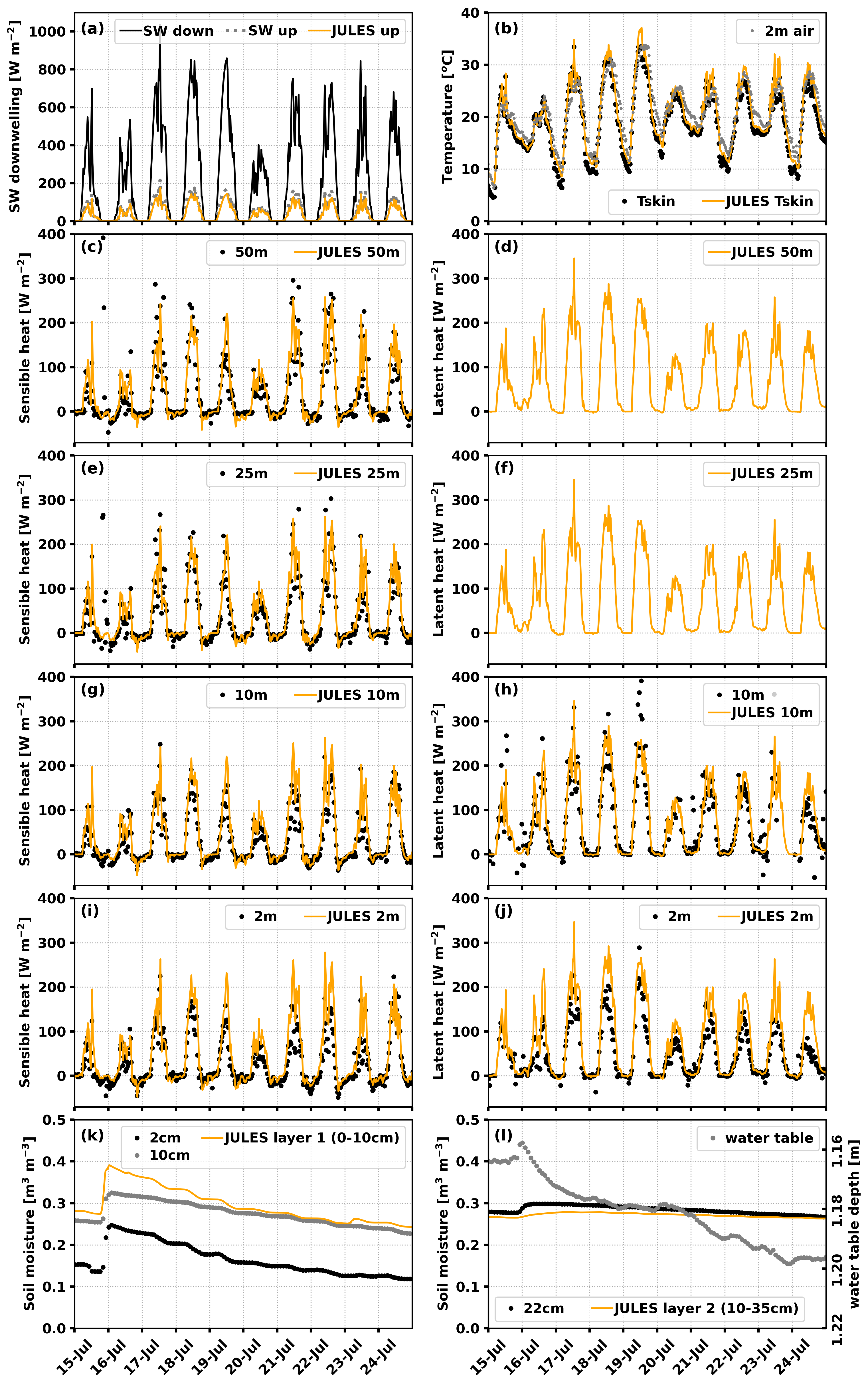 Best, M. J., Pryor, M., Clark, D. B., Rooney, G. G., Essery, R. L. H., Ménard, C. B., Edwards, J. M., Hendry, M. A., Porson, A., Gedney, N., Mercado, L. M., Sitch, S., Blyth, E., Boucher, O., Cox, P. M., Grimmond, C. S. B., and Harding, R. J.: The Joint UK Land Environment Simulator (JULES), model description – Part 1: Energy and water fluxes, Geosci. Model Dev., 4, 677–699, https://doi.org/10.5194/gmd-4-677-2011, 2011.