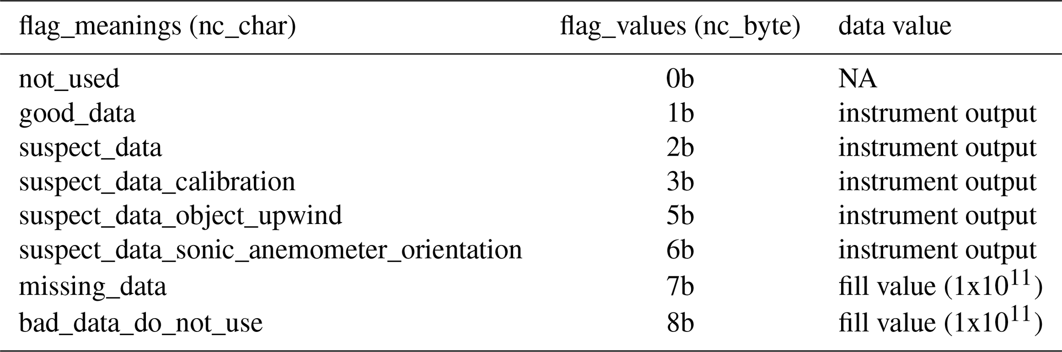The Gill tri-axis ultrasonic anemometers have an asymmetrical design that ensures minimal flow distortion except for a small angle centred at the mount point. The manufacturer quotes accuracy of the u, v and w components of better than 1 % RMS (root mean square) for wind speeds between 0 and 45 m s−1. When the wind direction was coming from the mast and mount of the sonic, it was flagged as such in the data (see Table 2). Although the sonics are capable of a 50 Hz processing rate, 10 Hz is sufficient to capture all the energy within the inertial subrange as it starts to blend into the dissipation frequencies (Mauder et al., 2020b). The orientation of the anemometer is logged in the header of the data files. Directions were measured with a compass and the bearing in degrees magnetic is noted. The magnetic variation can also be entered, and this is applied when calculating the true wind direction for the data display. The magnetic variation is not logged, so subsequent data processing routines were needed to take it into account to obtain the most accurate wind directions.