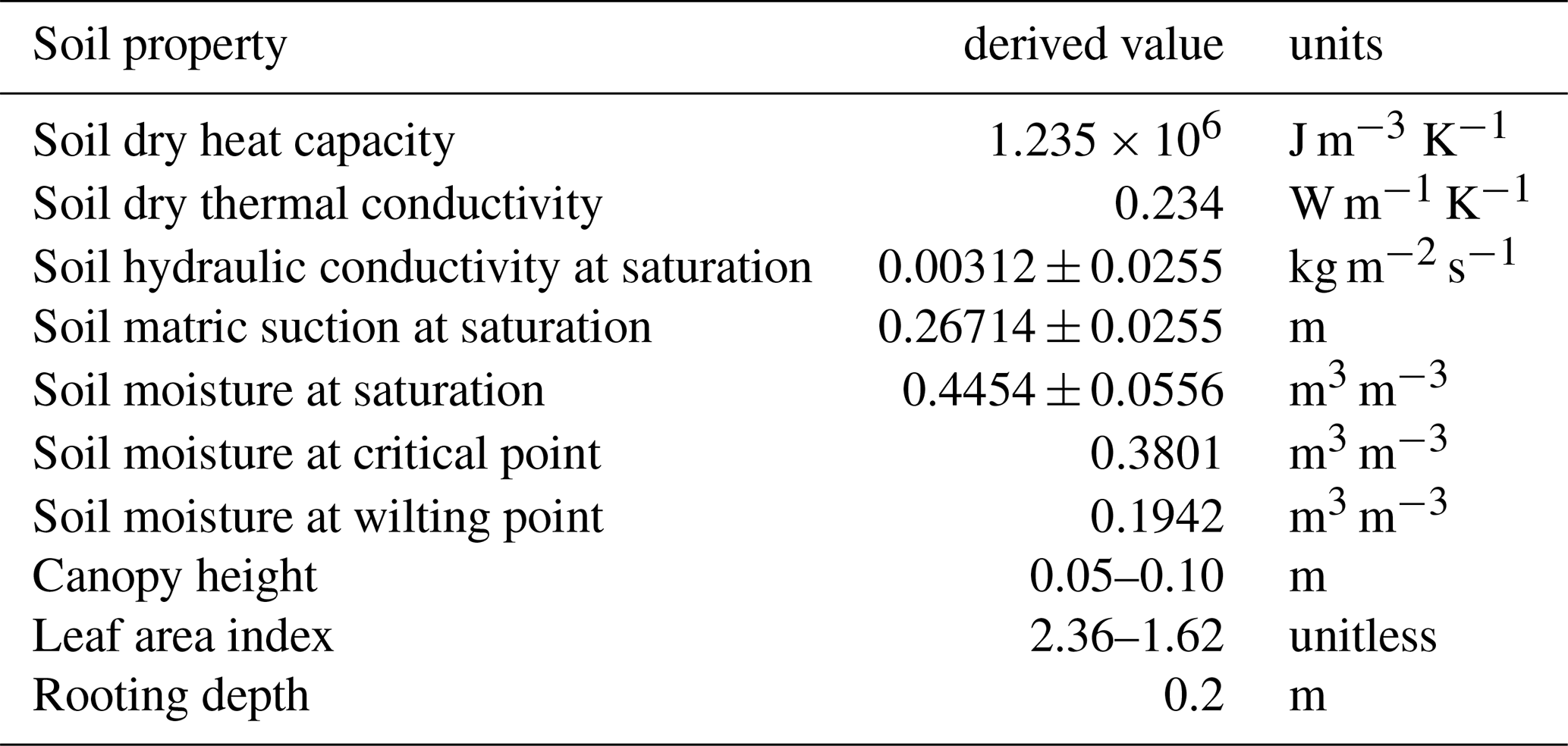Two Hukseflux ground heat flux plates were deployed at a nominal 2 cm depth from 2012. This allows an alternative method of determining ground heat flux to the change in the soil temperature profile with time based on one-dimensional heat conduction. After the West pit was decommissioned, two flux plates were installed side-by-side at the same depth at the South pit. An active heating self-calibration of the heat plates lasting typically 20 minutes was carried out every 13 h. During this calibration, no data are available. The self-calibrations are designed to account for changes in the soil conductivity, mainly because of changes in the soil water content. The plates were mounted horizontally, but like all subsoil sensors are prone to movement by soil heave, water flow etc. The fitting coefficients were chosen that most closely align with the soil type at Cardington, as detailed in Burton (1999). Although the grass canopy was meant to be kept to a nominal 5 cm height, there will be unreported times when this was not strictly maintained – this will suppress the diurnal range in ground heat flux compared to a short canopy. Canopy heat storage is not something that can be observed directly. Correction of the heat flux plate data for heat storage in the overlying top 2 cm of soil is possible based on the change in the co-located vertical temperature gradient with time. This correction is not applied to the processed files but should nonetheless be considered by the user using the available soil temperature change with time according to Equation 22 of Oncley et al. (2007). The soil thermal conductivity can be taken from Table 3 below. The user can apply the 1 to 4, or 1 to 7, or 1 to 10 cm, profile as data availability allows or the user deems appropriate.