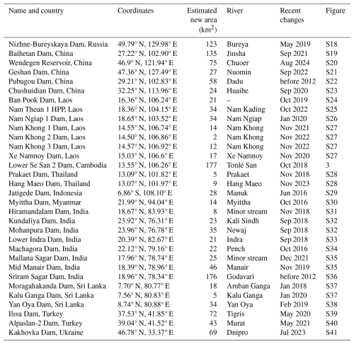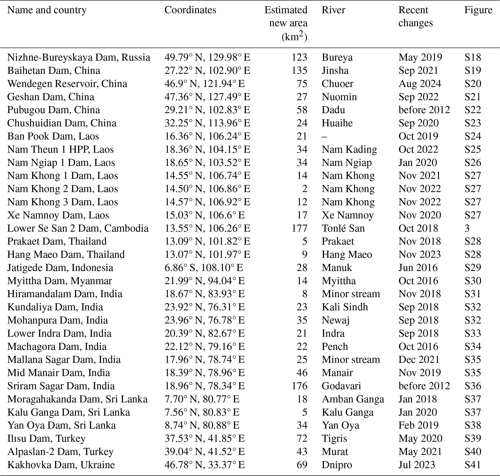 Table 3List of new and changed river dam reservoirs in Asia and East Europe.