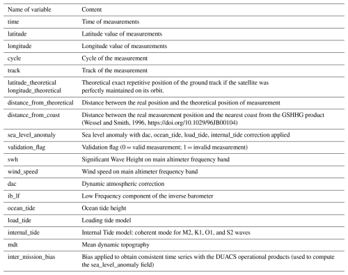 This data paper is structured as follows: Sect. 2 describes the method and input data for the study; Sect. 3 presents the data processing, the results of the product validation and the comparison to the X-TRACK coastal reference product; Sect. 4 provides detailed information on the resulting dataset and its distribution. The article closes with a conclusion and some perspectives in Sect. 5.