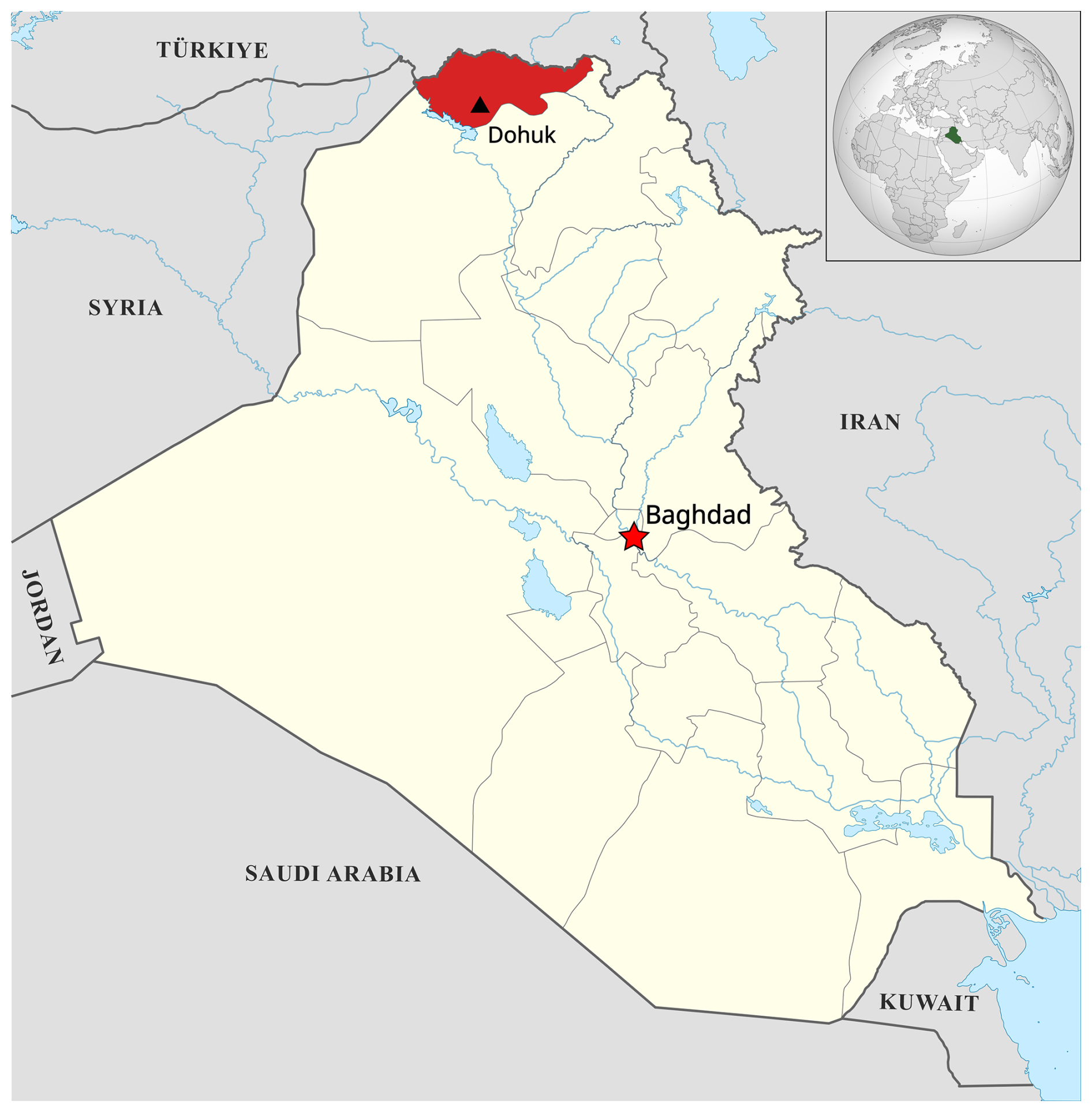 Figure 1Location of Dohuk governorat in the Republic of Iraq (Wikimedia commons). Realised with QGIS 3.34.5.