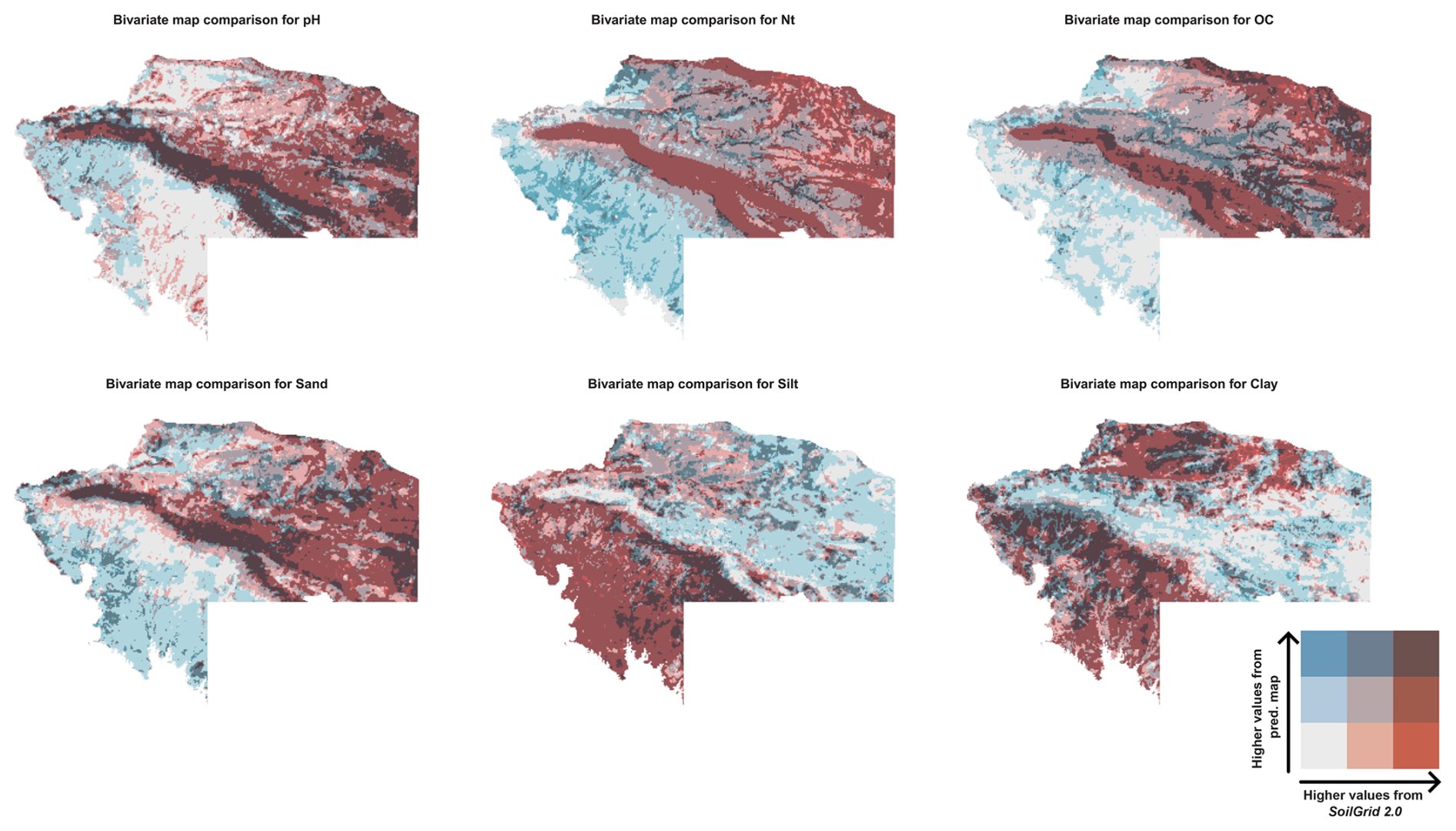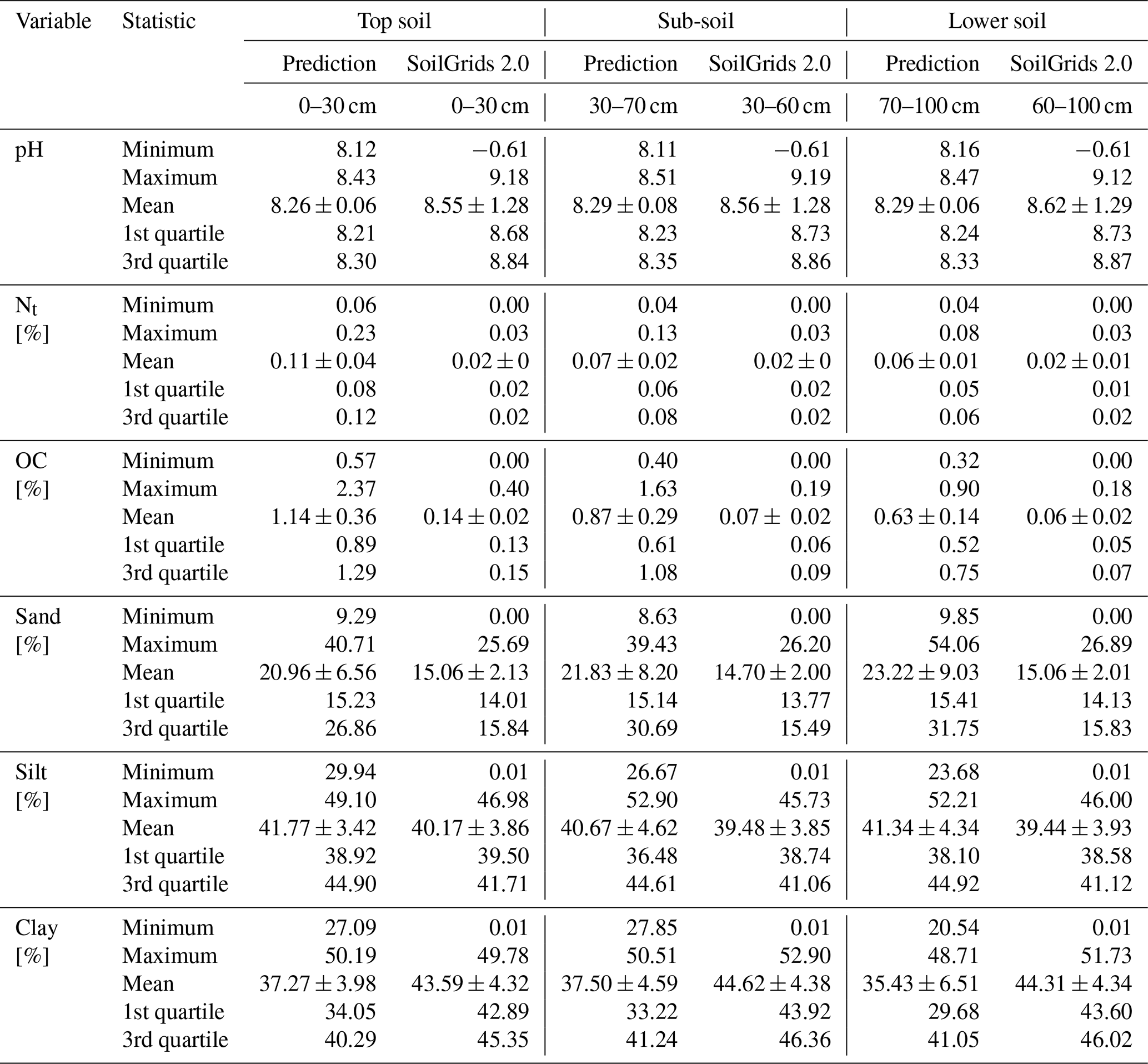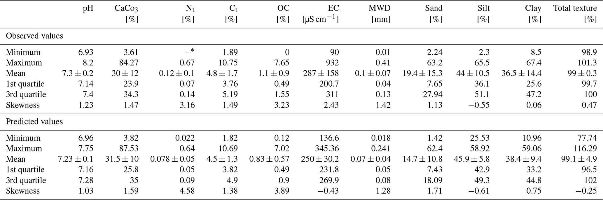Table 3Descriptive statistics of soil properties observed and predicted.