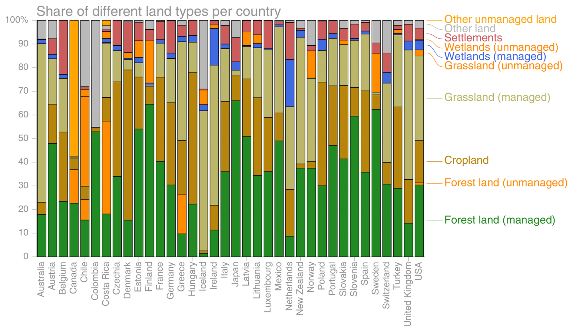 Figure 1Share of different land types per country. Data: National GHG inventories.