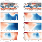 Table 1Correlation coefficients between the seasonal anomalies of oxygen and temperature in the upper ocean. Correlation coefficients are computed for the upper 100 m with respect to seasonal anomalies in temperature and oxygen in both the Northern and Southern hemispheres. Bold values indicate the highest correlation coefficients in absolute value.