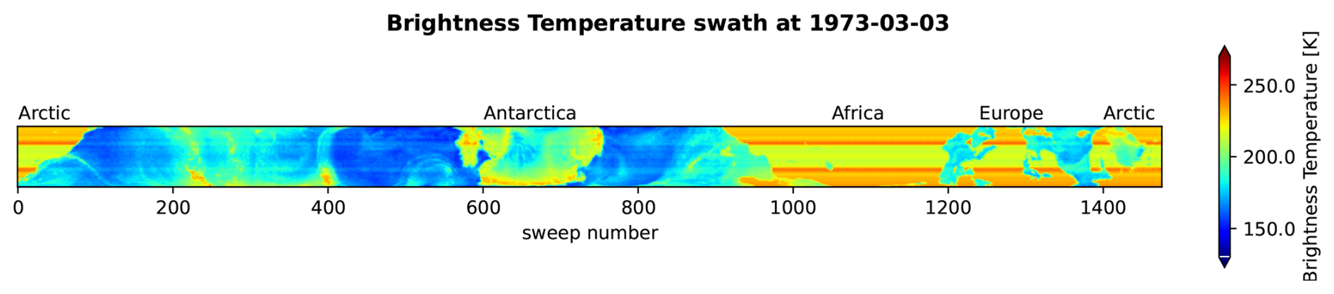 The methodology developed for processing the data set in Tonboe et al. (2016) to reduce noise and achieve stability of the sea ice climate data record (CDR) when processing data from nine different multichannel instruments (Nimbus-7 SMMR, 6 DMSP SSM/I, and 2 DMSP SSMIS) is also applicable to processing historical and experimental data sets from Nimbus-5 and 6 ESMR with poor calibration (Kolbe et al., 2024; Tellefsen et al., 2025). The same methodology has also been applied to process microwave radiometer sounder data from the Nimbus-6 SCAMS instrument not traditionally used for sea ice mapping (Kolbe et al., 2025), when NASA made these data sets available at level 1 in 2016 (GSFC, 2016).
