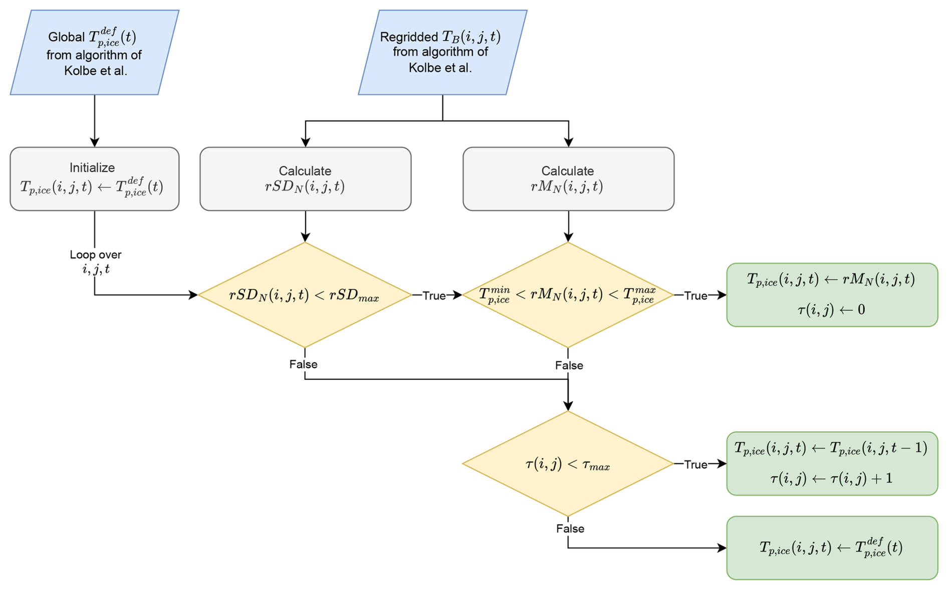 A flow chart illustrating the fully implemented algorithm is shown in Fig. 2. This implementation uses the regridded TB from v1.0, where the RTM TB corrections have already been applied. The algorithm is based on the assumption that is directly observable locally when SIC is constrained to 100 %: