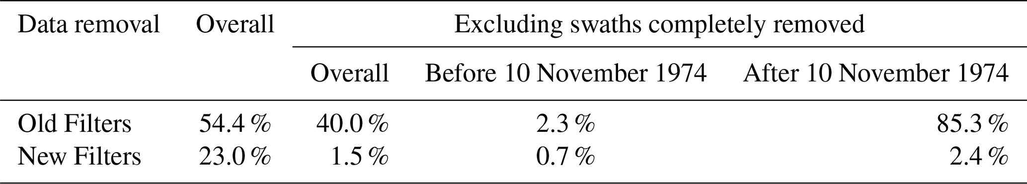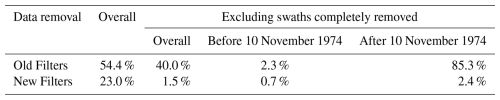 Table 1Fraction of data removed by the old and the new filtering scheme, both overall, and constrained to before and after 10 November 1974.