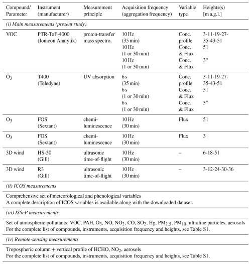 Overall, ozone flux measurements at the TOP and TRUNK levels were more frequent than those for VOCs, since the two FOS analysers operated continuously, while the PTR-ToF-MS had to alternate between levels. This will be discussed further in Sect. 2.4.2.