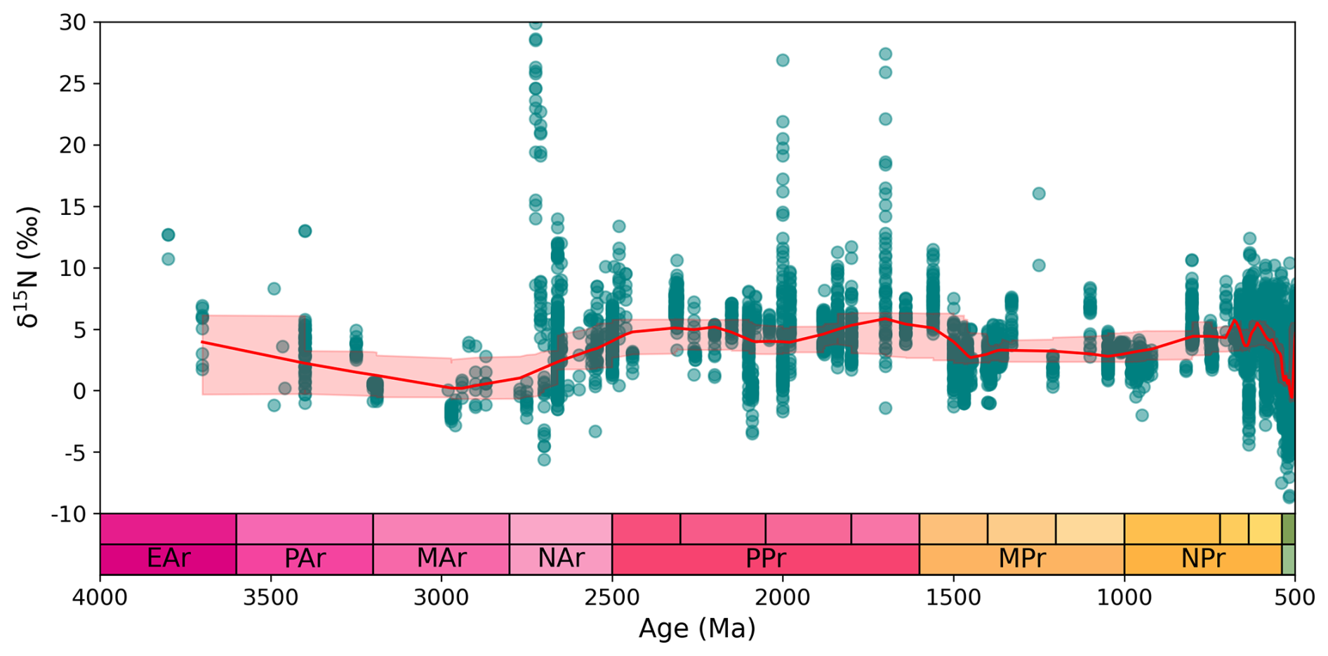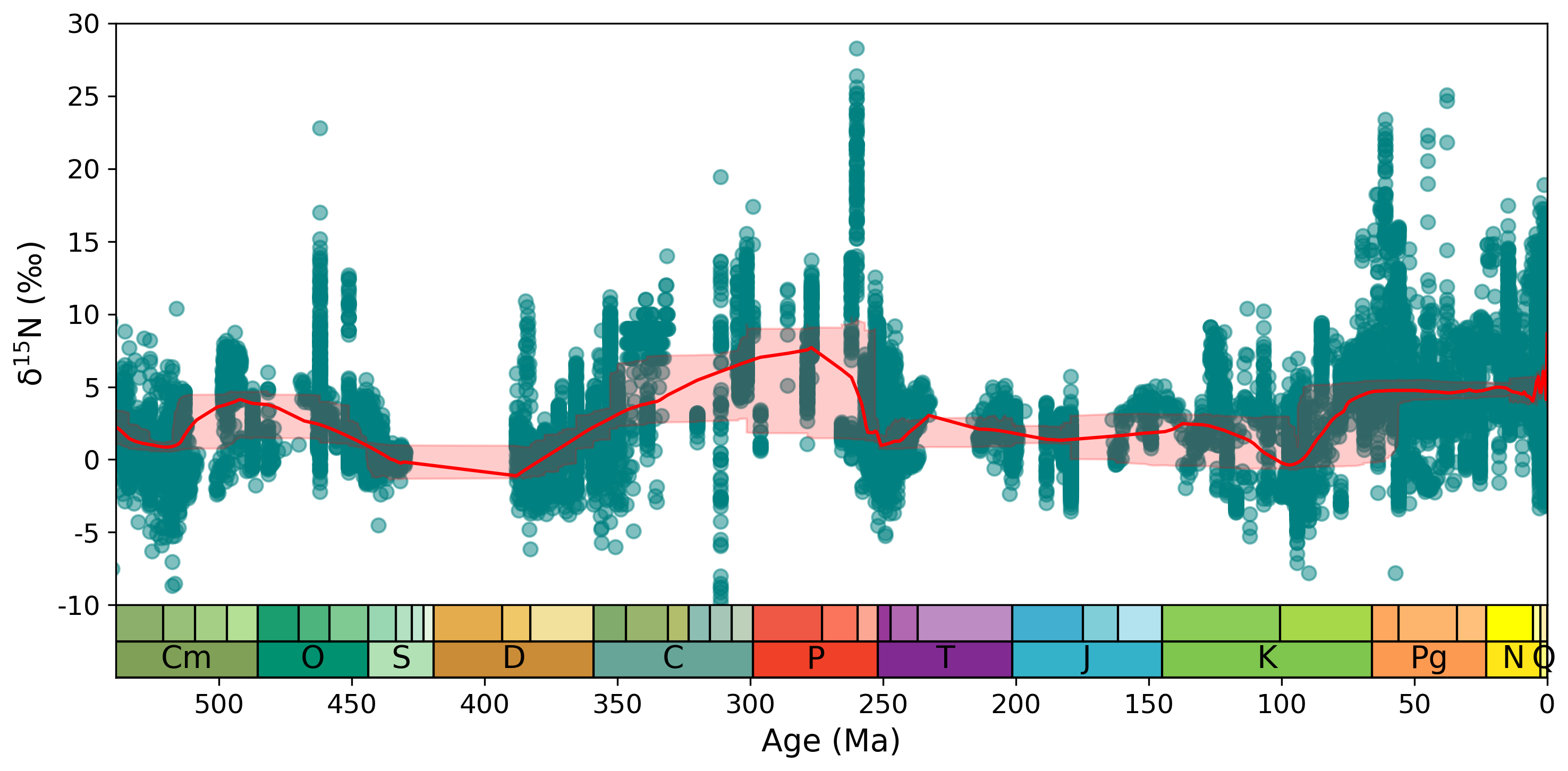 This work has benefited from previous δ15N datasets compiled by Jan-Erik Tesdal, Christophe Thomazo, Thomas J. Algeo, Eva E. Stüeken, Magali Ader, Xinqiang Wang, and Michael A. Kipp.