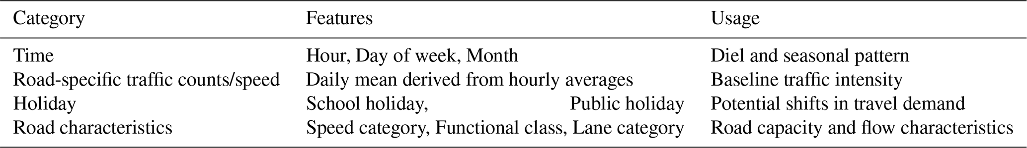 Table 2Spatial-temporal features used as predictors of traffic variables.