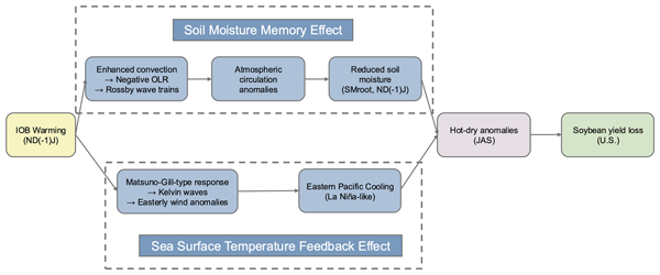 The preseason warming of the Indian Ocean resulting in soybean failure in US